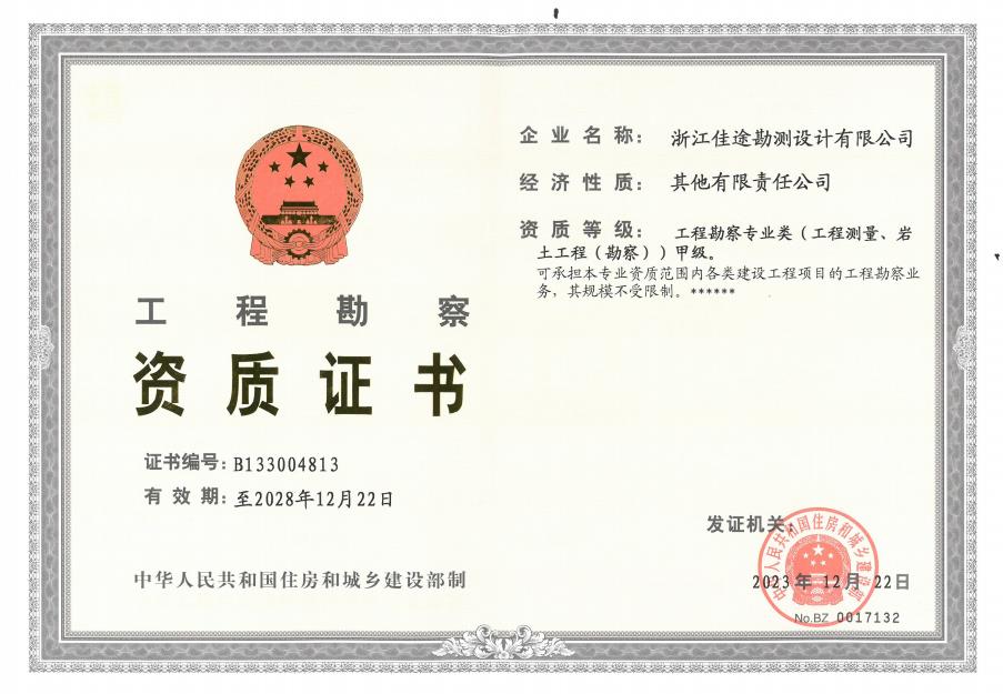 工程勘察專業類(工程測量、巖土工程(勘察))甲級